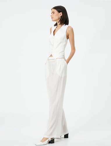 KOTON - KOTON womens Embroidered Medium Rise Pocket Detail Wide Leg Trousers