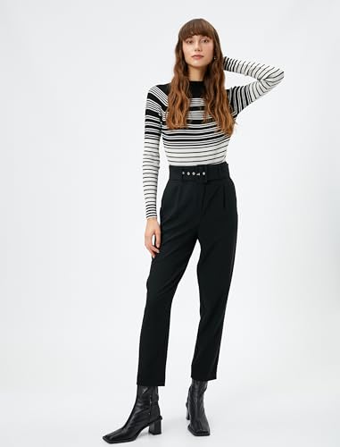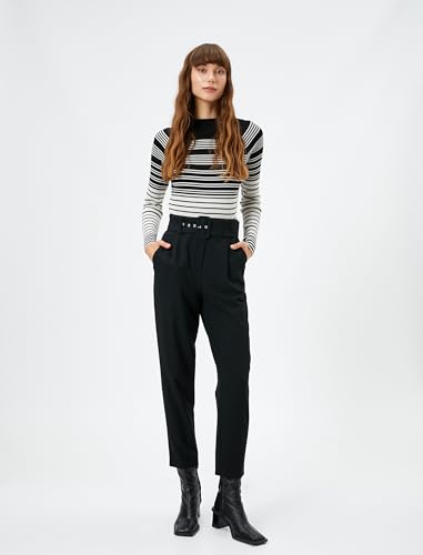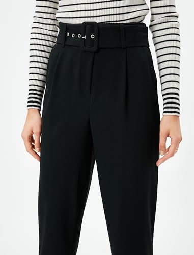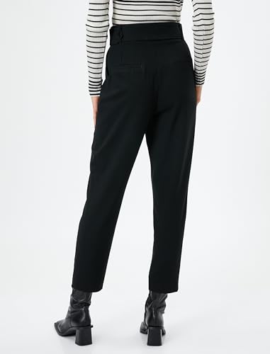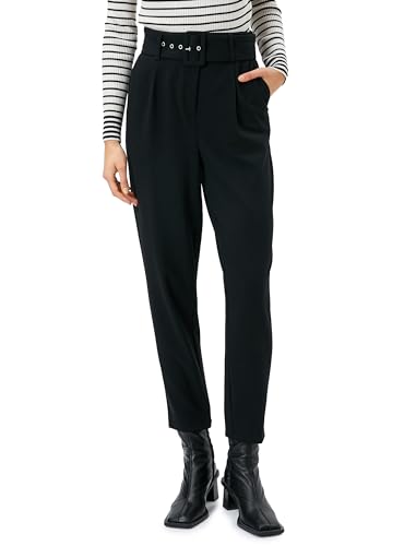 1 x Koton Pocket Detail Belted Classic Trousers for Women, Size 36, Black (999)