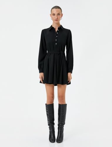 KOTON - KOTON Womens Puff Sleeve Buttoned Belted Voluminous Mini Dress Mini Dress (pack of 1)