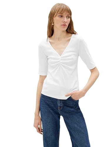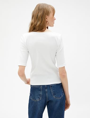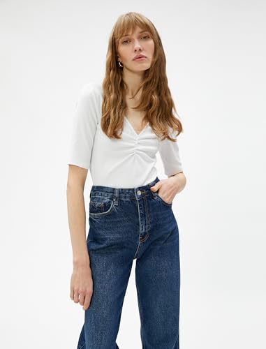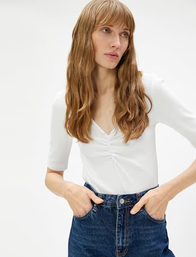 KOTON - KOTON womens Short Sleeve Shirred V Neck Tshirt