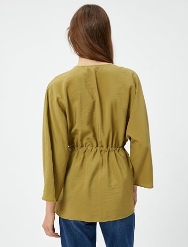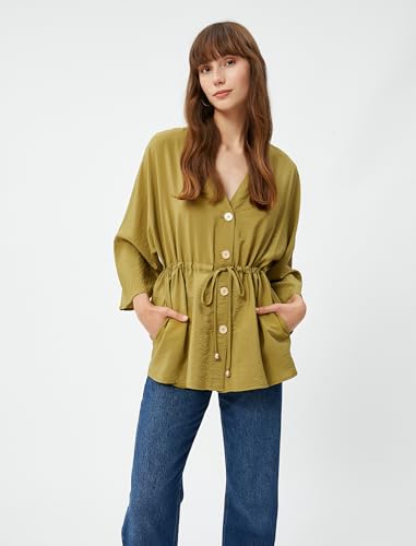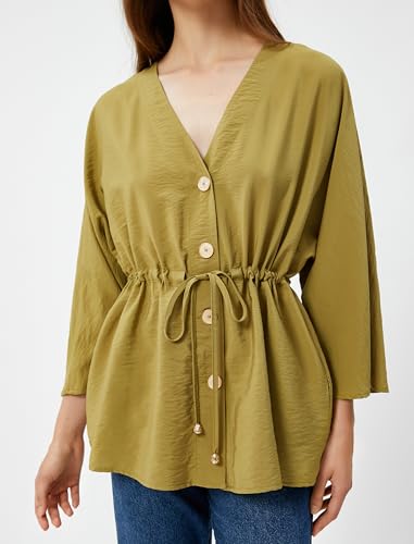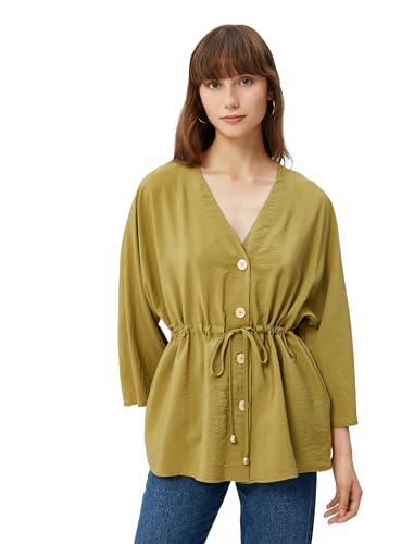 KOTON - KOTON womens Tissued Short Sleeve Tie Detail Buttoned Kimono Blouse Shrug Sweater (pack of 1)