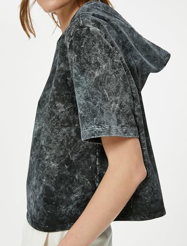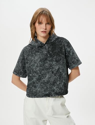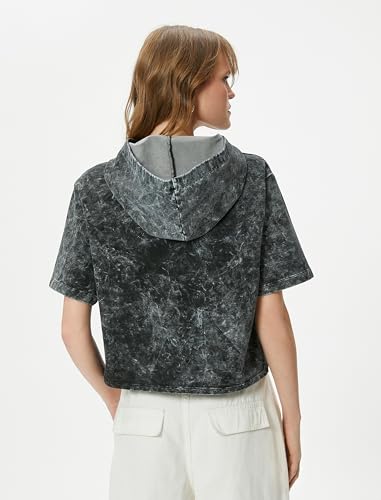 KOTON - KOTON womens Wash Effect Short Sleeve Hooded Sweatshirt