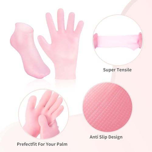 - ✔【High Quality Silicone】Moisturizing Glove Socks Set Made of Super Soft Silicone, Durable.with these spa moisturizing gel socks, you can take care of your feet at home and ensure that your feet do not break due to dryness even in the dry winter months;