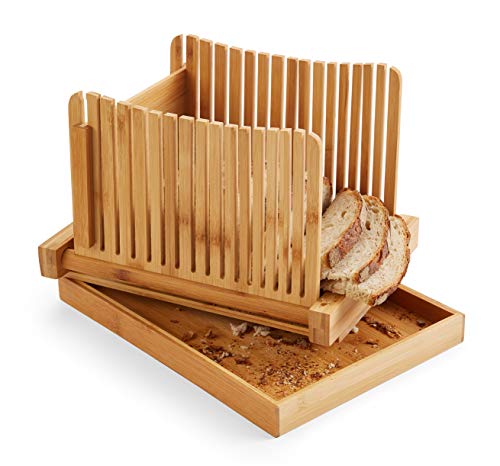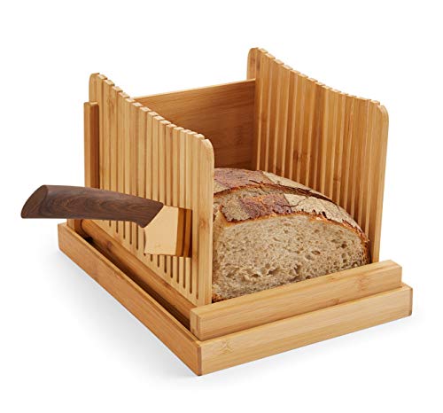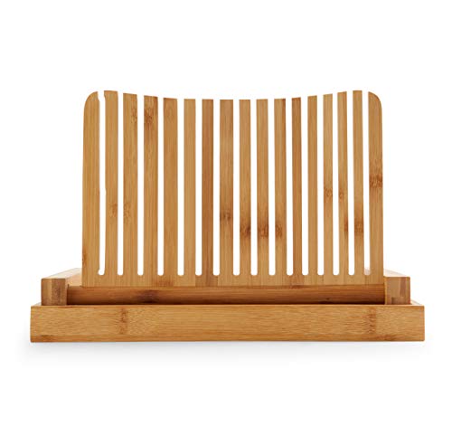 Kozy Kitchen - Bread Slicer Guide for Homemade Bread and Loaf Cakes, 100% Organic Bamboo Bread Slicing Guide, Compact Foldable Bread Cutter Guide, Enhanced Bamboo Wooden Bagel Slicer