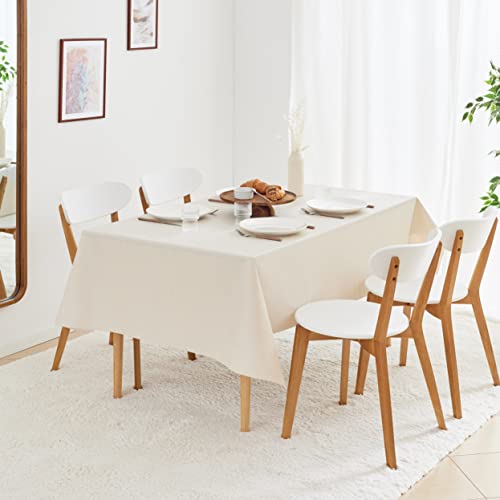 KP HOME - KP HOME Waterproof PVC Tablecloth - Rectangle Oilcloth 78 X 55 in | 200 X 140 cm - Modern Dash Lines Table Clothes Wipe Clean - Vinyl Dinning Wipeable Plastic Table Cover in Cream Beige