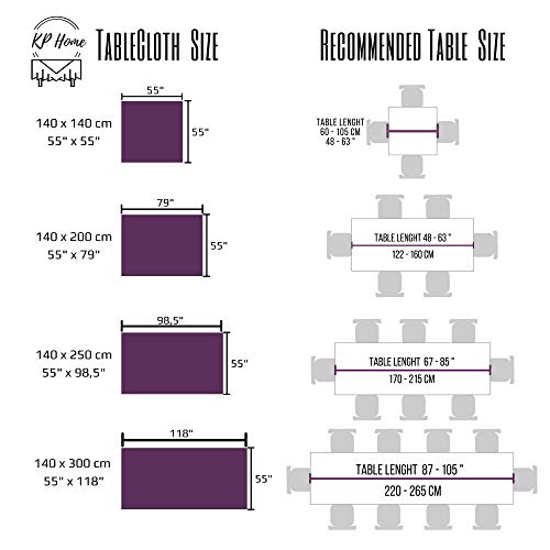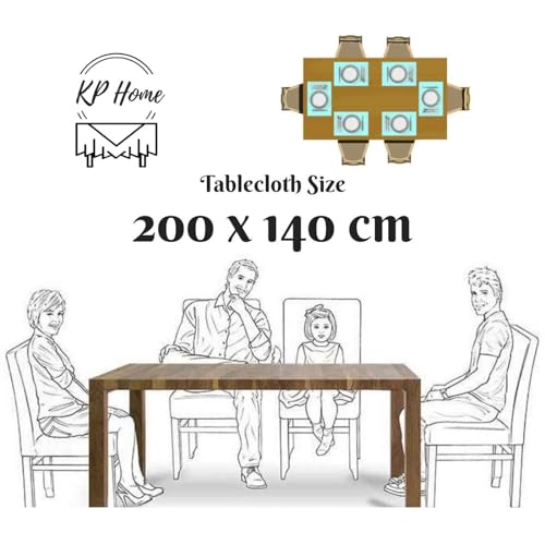 - Rectangular 200x140 cm plastic table cover beige - the length is 200 cm and the width is 140 cm - perfect 6 seat table cloth rectangular. Plastic tablecloth wipe clean with minimalist dash pattern will nicely fit your rectangular, oblong or oval kitchen or dining room table. 2 metres long table cloth wipeable can be easily cut to smaller size - KP Home table cloth wipeable drapes well and will not fray.