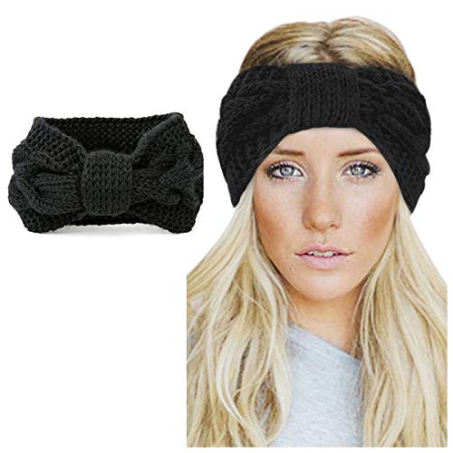 KQueenStar - Direct Womens Winter Knitted Headband - Crochet Knitted Turban Headwrap Twist Hair Band Warm Crocheted Hairband Hat Cap Ear Warmer, Balck-b, 12