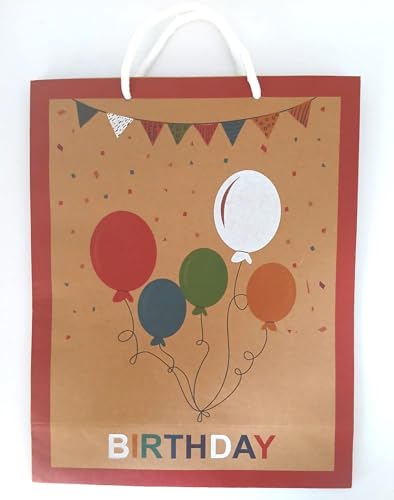 Generic - Kraft Paper Birthday Gift Bags with Printed Designs, Brown Kraft Bags for Valentine’s Day & All Occasions (Kraft Colored Print, Medium, Happy Birthday Balloons)