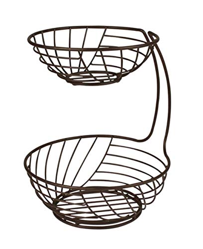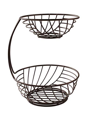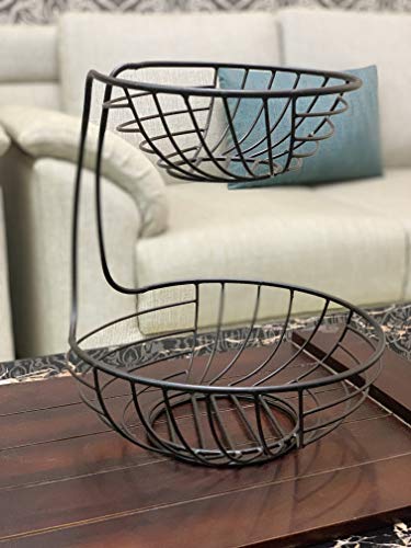 KRAFTYHOME - Cast iron French Country Wire Two Tier Fruit Basket Stand for Storing & Organizing Vegetables, Eggs, and More (Black, 13 x 10 inch)