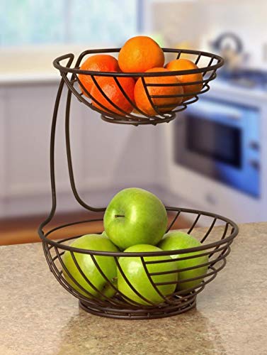 - 𝗗𝗘𝗦𝗜𝗚𝗡𝗘𝗗 𝗙𝗢𝗥 𝗔𝗡 𝗘𝗩𝗘𝗡 𝗥𝗜𝗣𝗘𝗡𝗜𝗡𝗚. This two-tier basket has an open wire design that’s ideal for storing fruits fresh from the market as they ripen evenly to perfection in room temperature. It’s also perfect for storing different sizes and types of vegetables.