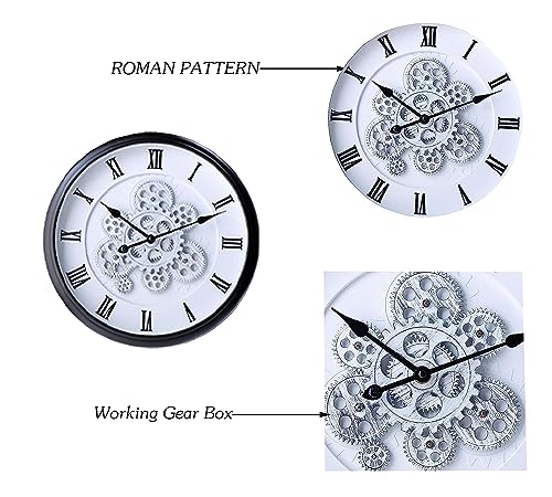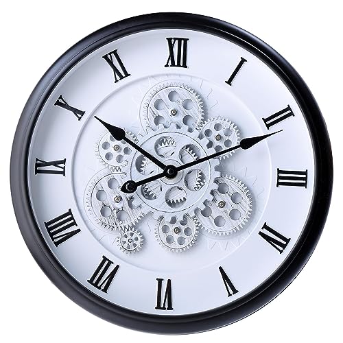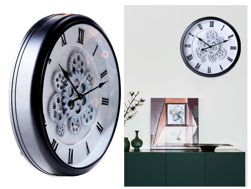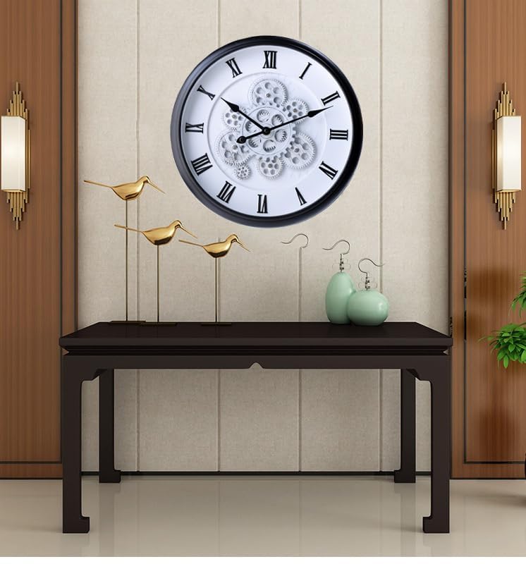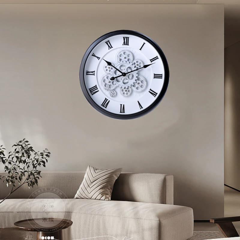 KRESHU - ساعة حائط ستيمبانك بتصميم عتيق ملكي بطابع ريفي مزودة بتروس متحركة مناسبة لغرفة المعيشة والمزارع والمداخل والفنادق والفلل من كريشو، 38 × 38 سم (أسود، 1 قطعة)