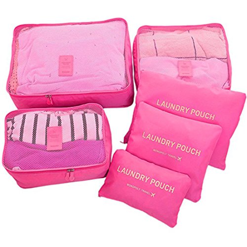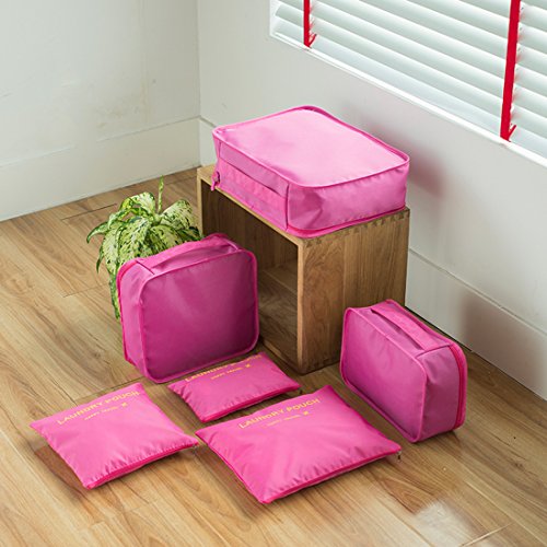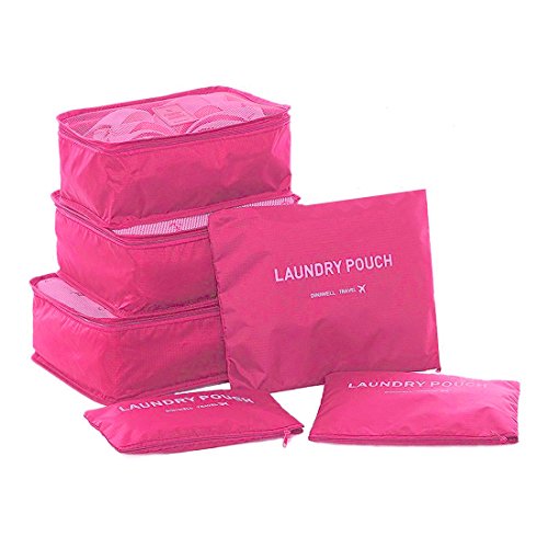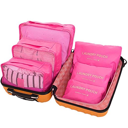 Ksport - Ksport 6 Set Packing Cubes Travel Luggage Organizer 3 Travel Cubes + 3 Pouches (6 pack), Red, One_Size,
