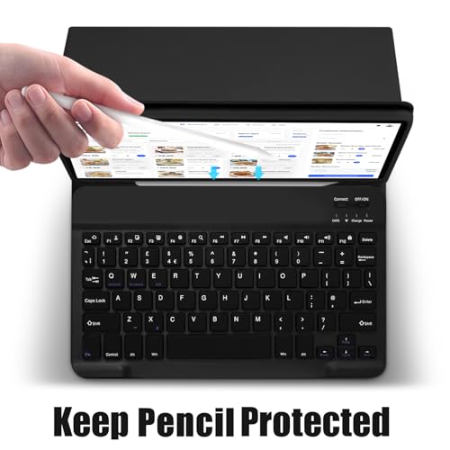 KTOITION - Case with Keyboard for iPad Pro 11" 2024 (M4) – UK English QWERTY Bluetooth Magnetic Detachable, Slim Protective Cover with Pencil Charging & Ultra-Responsive Keys – Black