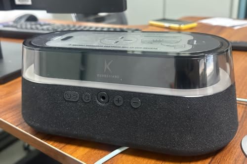 KUANGXIANG - 6 in 1 Alarm Clock for Bedroom, Digital Speaker Wireless Charging 15W, FM Radio, LED Night Light, Dual Alarm, Black