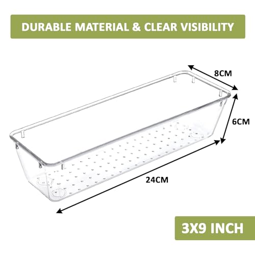 - 🍧 PACKAGE CONTAINS : 6 Piece Drawer Organizer (3x9 Inch) MATERIAL : Acrylic | PRODUCT DIMENSION : 24 cm x 8 cm x 6 cm
