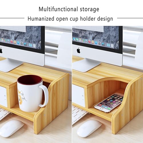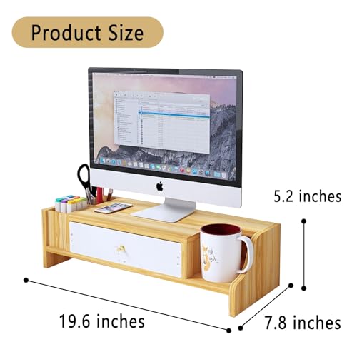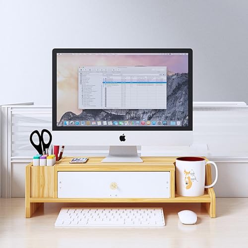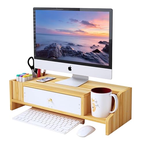 KUHEITAER - Monitor Riser, Monitor Stand, Monitor Stand Riser with Drawer, Wood Computer Stand, Computer Monitor Riser, Desk Organizer for Computer, Laptop, Printer, Home Office