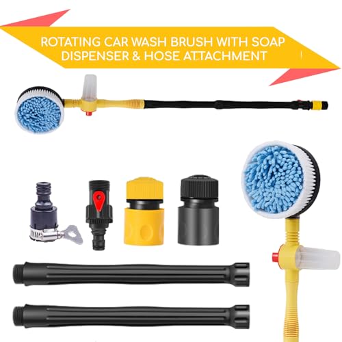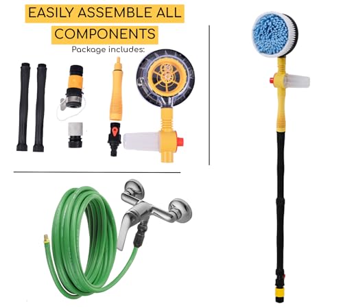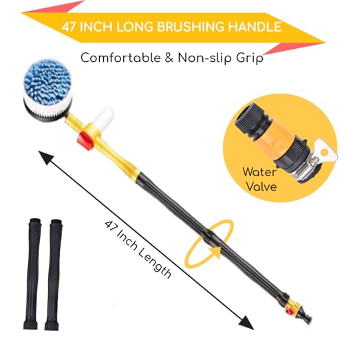 - 【360 Degree Rotate Automatically】- No Extra Electricity Needed. Pushed by powerful water flow, the brush can spin automatically to wash car. Huge energy saver in exterior car cleaning job, dramatically speed up your car washing.