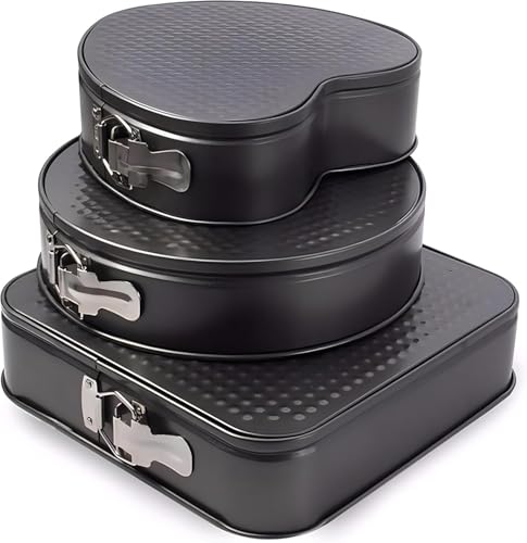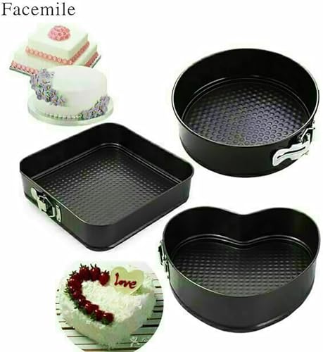 Generic - طقم صواني تشيز كيك كلبس ثلاث قطع بأشكال متنوعة دائري مربع قلب مع مقاسات مختلفة 24 26 28 سم لتحضير كيك وتارت احترافي بسهولة في المنزل