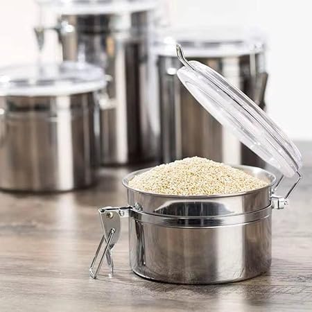 - SUPERIOR AIR CLOSURE: Each bowl features a sturdy metal snap lid that ensures a completely tight seal (Airtight) which protects your contents from moisture, insects and air to keep freshness for months.