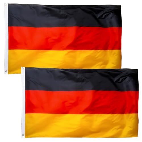 - PACKAGE INCLUDES: A set of two flags Germany flag 3x5 feet with 2 sturdy metal rings for hanging on a pole, on the balcony or safely from your window. Two German flags are sufficient for most occasions