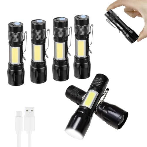 KunHe - KunHe Rechargeable Flashlights USB-C Stocking Stuffers Small LED Lantern Flashlights Bright Clip-On Light EDC Flash Light with Side COB Light for Camping Home Emergency 6 Pack