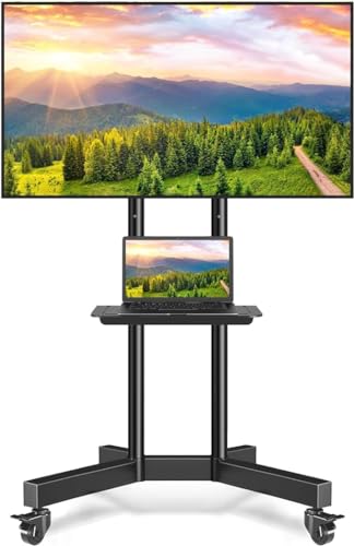 Kusport - حامل تلفزيون محمول من كوسبورت لشاشات LCD وLED المسطحة/المنحنية مقاس 23-60 بوصة، عربة تلفزيون قابلة للإمالة تحمل ما يصل إلى 40 كيلوجرام محمول مع رف لاب توب، أرضي دوار ماكس فيسا 400×400 ملم (PSTVMC35)