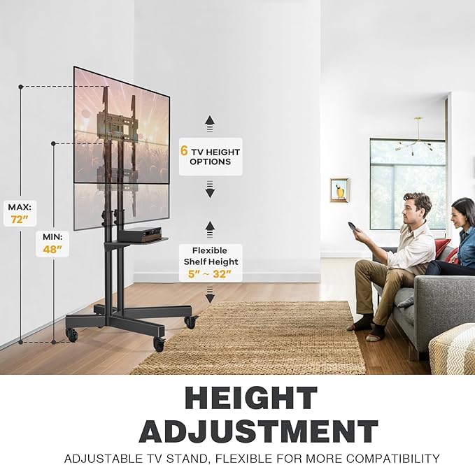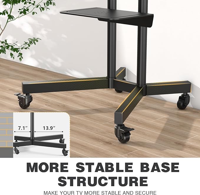 - ➽【حامل دوار للتلفزيون شديد التحمل】--حامل التلفزيون المسطح ذو جودة عالية من الدرجة التجارية، والقاعدة مصممة لوضعها في أماكن غير متوازية مثل الزوايا لتوفير المساحة. مناسبة للاستخدام التجاري والسكني، سهلة التجميع والتركيب.