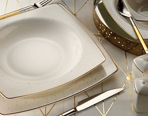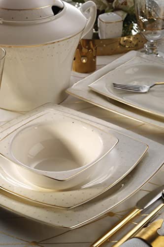 Kütahya Porselen - طقم عشاء بورسلين بون ماري مكون من 62 قطعة من كوتاهيا- لون ذهبي