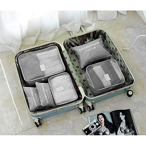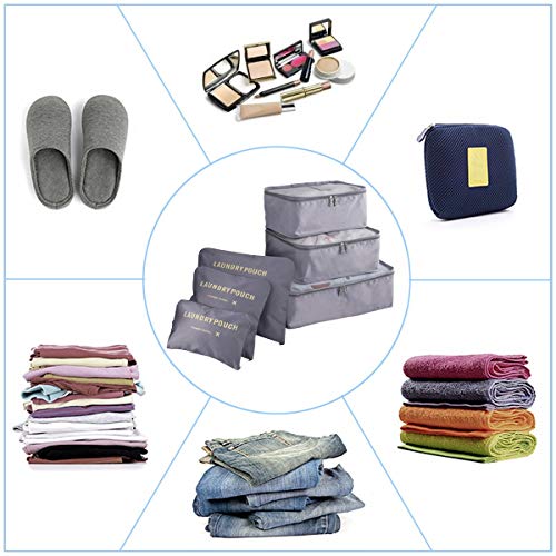 KuTi Kai - Travel Essential Bags-in-Bag Packing Cubes Durable Travel Luggage Organisers Suitcase Storage Bags Compression Pouches 6 Packs (Grey)
