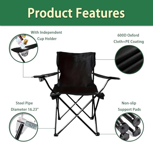 - 【🥇Camping Chair】- - The folding chair is finished with double layer durable 600D oxford and fastened X-shape supports. Chair’s legs have a design of a rotatable duck foot which are very stable and suitable for beach.
