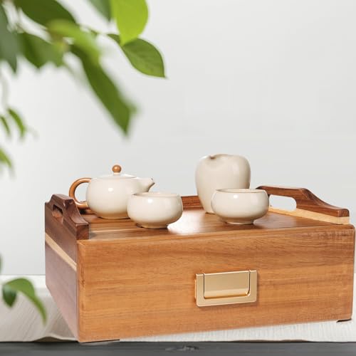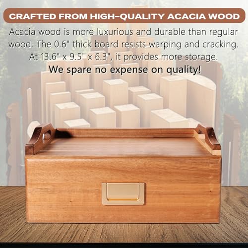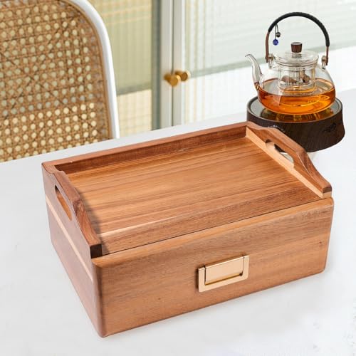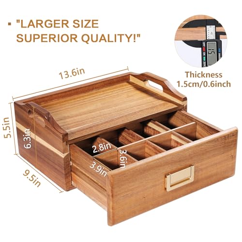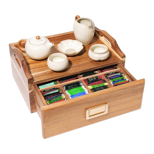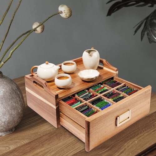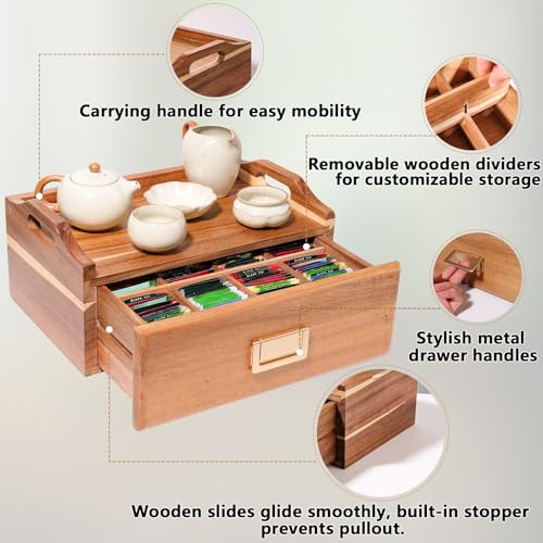 KUYOVORA - Acacia Wood Tea Bag Organizer with Drawer, Tea Organizers and Storage Box with Carrying Handle,Sturdy 0.6" Thick Panels,No Assembly Required, for Kitchen, Living Room, Office & Garden