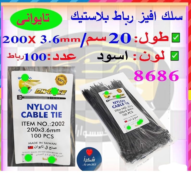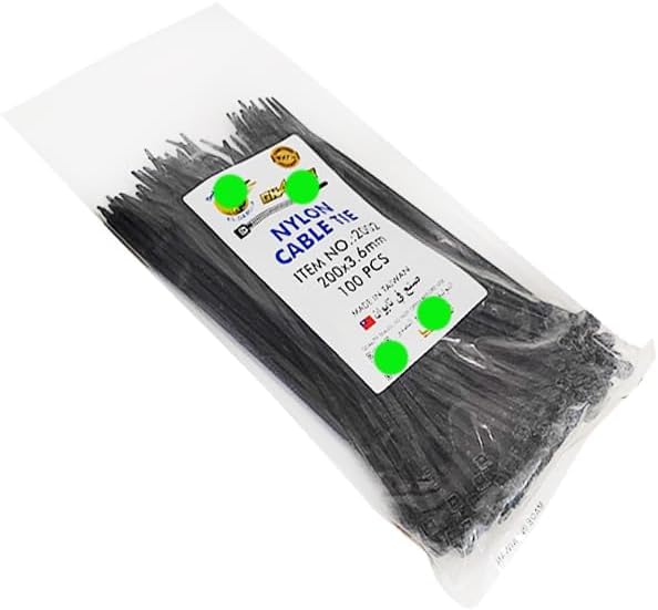 Generic - Kviz Plastic Drawstring Cord, Aviz Belt Heavy Duty Self Locking Multi Use - (100 Pieces, Black, 20cm, 3.6mm, Code1036:8686) by Nesmah Store