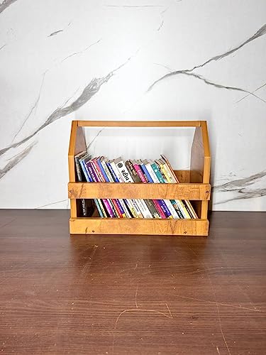 KVS Furniture - Wooden Book Shelf for Home Library | Rustic Natural Wood Book Stand Shelf for Table and Home Decor | Gift for Book Reader Yellow