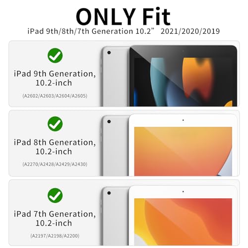 - Compatibility Model : Exclusively designed for iPad 9th/8th/7th Generation (2021/2020/2019) 10.2 Inch (Model Number:A2602/A2603/A2604/A2605/A2270/A2428/A2429/A2430/A2197/A2198/A2200) Tablet. Please note: Not compatible with other tablet models. Please check the model number on the back of your tablet