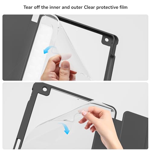 - Auto Wake/Sleep : This iPad 9th generation case provides auto sleep/wake feature, extend the standby time and reduce the loss of battery. (Please tear off the protective flim on the front and back of the clear back cover before use!)