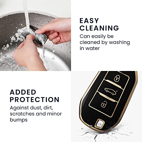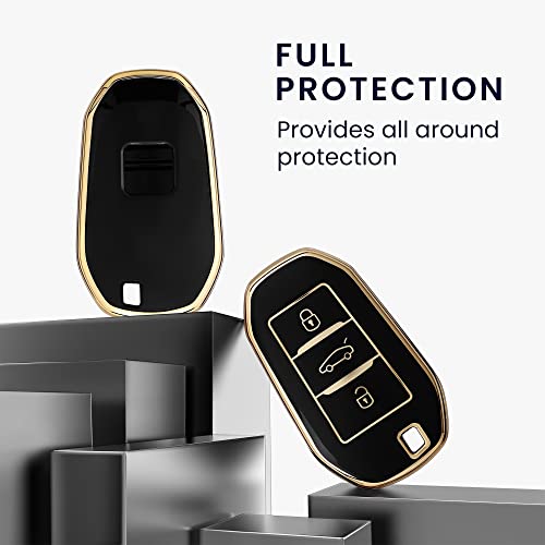 kwmobile - kwmobile Car Key Case Compatible with Peugeot Citroen Smartkey (Keyless Go Only) 3-Button Silicone Car Key Cover Protective Case Black Gold