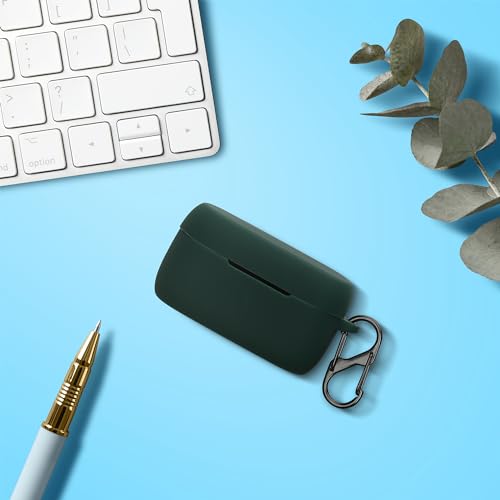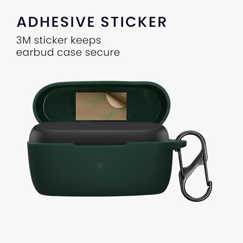 kwmobile - kwmobile Silicone Cover Compatible with Jabra Elite 4 (not for Elite 4 Active) - Case Cover Stick-On Skin with Clip - Dark Green