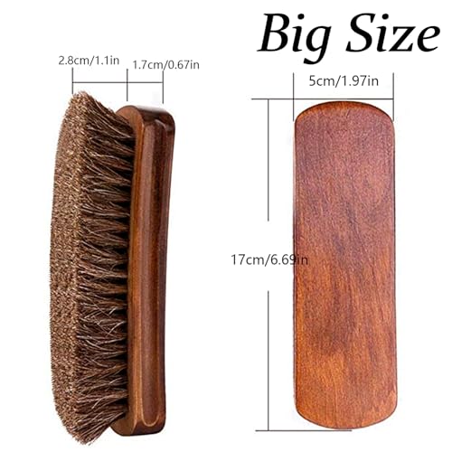 - 【Practical Polish Brush】17cm Big Size Shoe Shine Brushes with wood handle, works fine for cleaning or polishing, comfortable design for a long time use, practical clean dauber for shoes. Effortlessly removes dust and residual dirt from your favorite leather boots, shoes, jackets, and even furnitures! Works perfectly with any sprays, foams, erasers and cleaning kits.