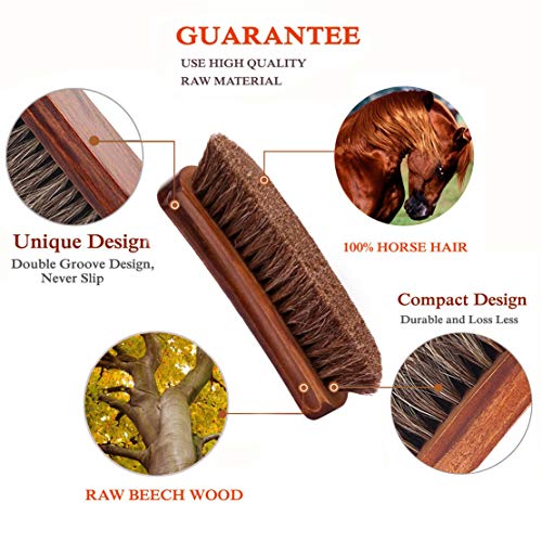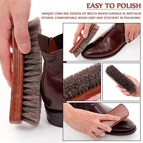 - 【Premium Horsehair Brush】Horse Hair Shoes Brushes are made of 100% Soft Genuine Horse Hair and imported beech wooden. The main features of the shoe polish brush are soft bristles, anti-static, strong water absorption and good cleaning effect, won't scratch the leather.