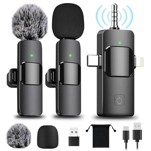 - Omnidirectional Sound Reception with Windproof Design :Equipped with a high-sensitivity microphone and high-density spray-proof sponge, our wireless lavalier mic captures every detail of your voice, even in noisy surroundings. Includes 2 plush windproof covers and 2 replacement sponge heads for reliable performance in outdoor or windy conditions.