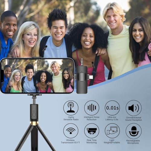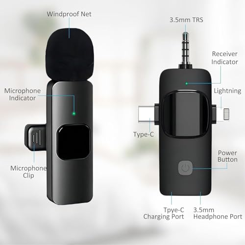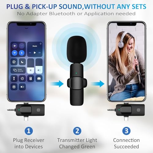 - Plug & Play with Wide Wireless Range :Setting up is effortless—simply plug the receiver into your device, turn on the transmitter, and the mic auto-pairs in seconds. No adapters, Bluetooth, or apps needed! With a 65 FT wireless range and 20m transmission distance, enjoy freedom of movement during recordings.