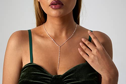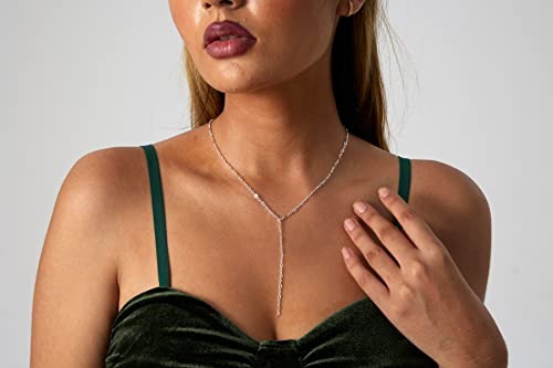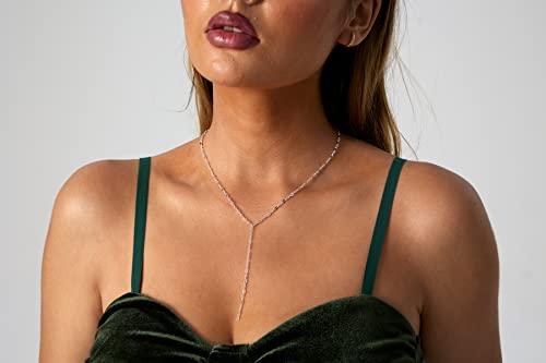 Kyerlyn - Kyerlyn 14K Gold Plated Zircon Y Lariat Necklaces Long Drop CZ Pendant Y Necklace for Women Dainty Diamond Chain Necklace Fashion Jewelry, 15.8 inches