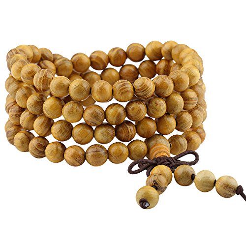 KYEYGWO - سبحة قلادة للنساء مالا 108 سوار خرز من خشب التبت الطبيعي للتامل كيجو بدون أحجار