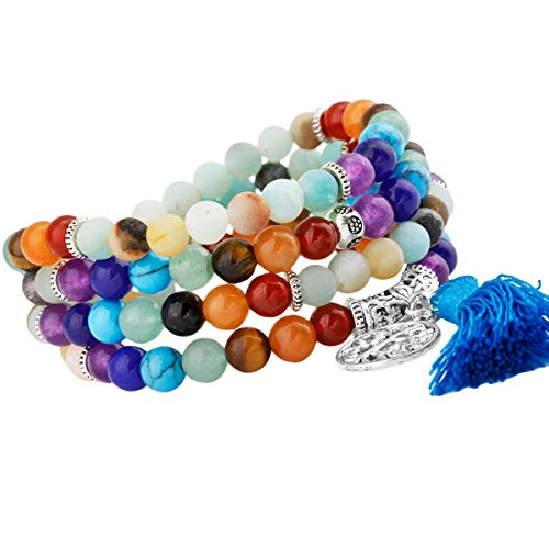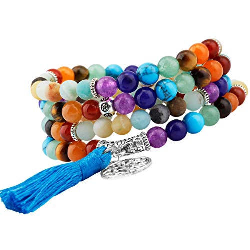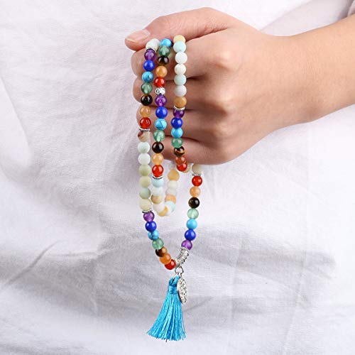 KYEYGWO - 108 Prayer Mala Beads Bracelet for Men and Women, 6 mm Tibetan Buddhist Healing Stone Necklace for Unisex, Stone, Amazonite