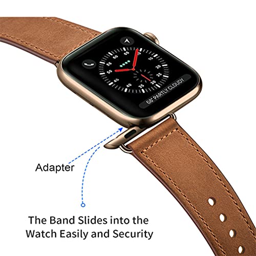 KYISGOS - كايسجوس متوافق مع سوار اي ووتش 45 ملم 44 42 41 40 38 بديل من الجلد الطبيعي ساعة ابل اس سلسلة 7 6 5 4 3 2 1 بني رترو - برونزي ذهبي - - للبالغين الجنسين