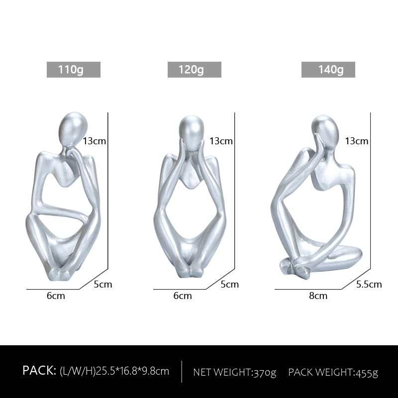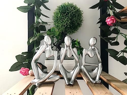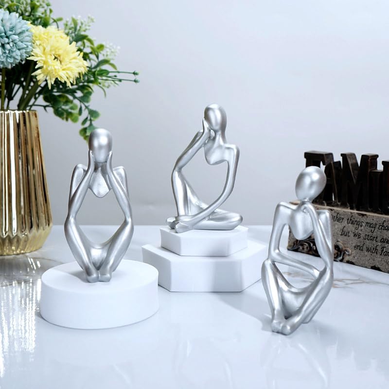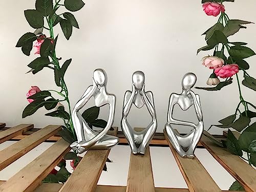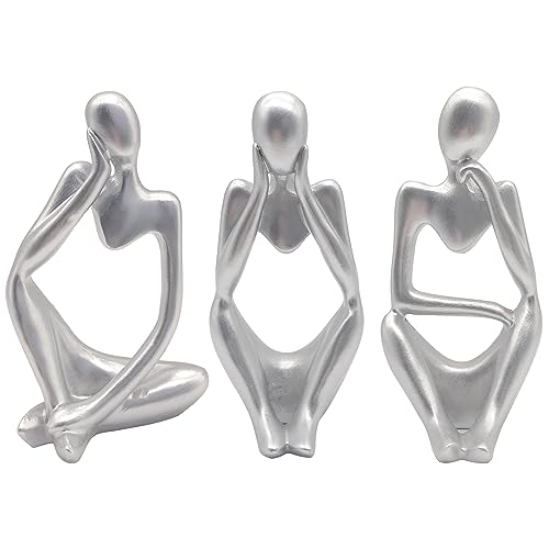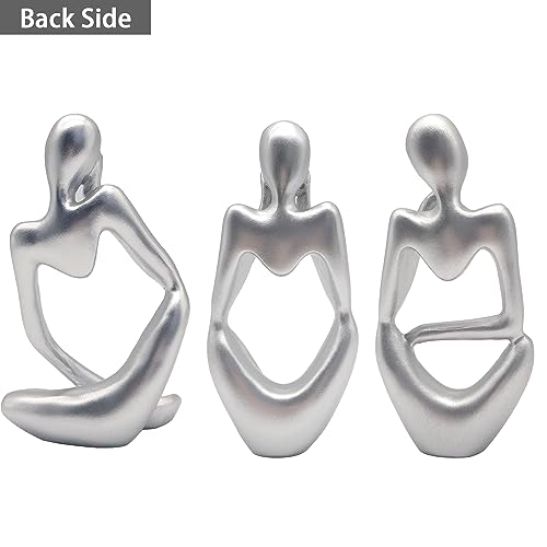 KZDZTYF - 3pcs Silver Decor Thinker Statue. Abstract Art Sculpture. Decorative Figurines for Office, Living Room, Book Shelf, Home Decoration