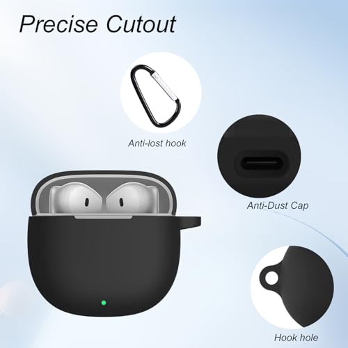 KZIOACSH - Silicone Case for Honor Earbuds X6, Ultra Slim Anti-Scratch Anti-Lost Protective Earbuds Case Lightweight Washable Sumdge-Proof Earphone Skin Cover with Carabiner for Honor Earbuds X6, Black