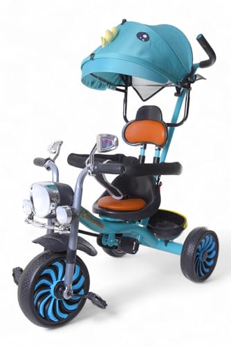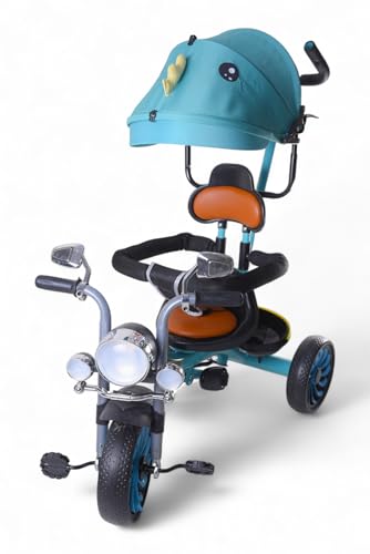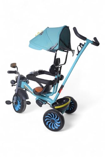 L'AMOUR - L'AMOUR Kids 3-Wheel Tricycle (KBQ-8155) / 458 – Turquoise Trike with Canopy, Adjustable Seat & Safety Handlebar, Comfortable Cushioned Design, Durable Ride-On Toy for Toddlers and Young Children