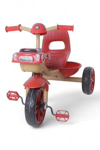 L'AMOUR - دراجة ثلاثية العجلات للأطفال (806) / 1535 - دراجة ثلاثية العجلات بلون أحمر وبيج، تصميم قوي بـ3 عجلات، مقعد مريح، إطار متين، لعبة ركوب داخلية وخارجية للأولاد والبنات من لامور