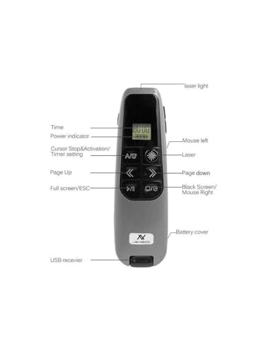 L'avvento - L’avvento MO997 | Wireless Presenter with Air Mouse | 2.4GHz Motion Sensor | Red Laser Pointer | LCD Display & 20m Range | Dark Silver